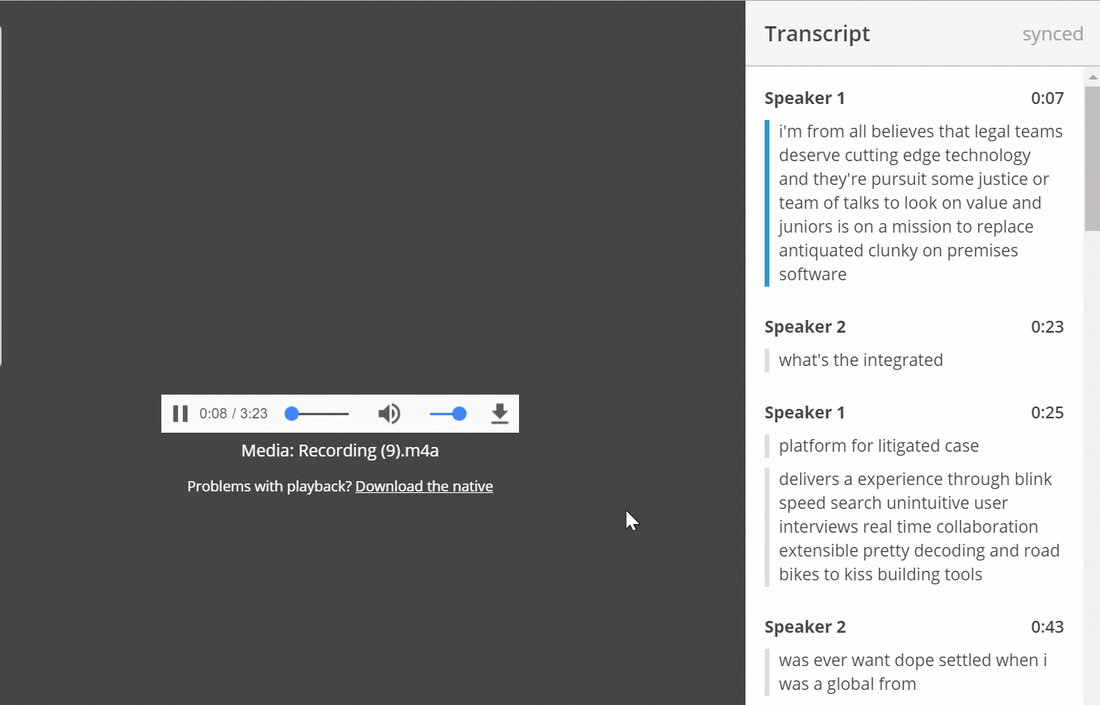 Had they been using Everlaw’s review tools, the Responding Party would have had several options for responding to this discovery request. The first step would be to collect video files that had been broadcast to the company after the date of the Defendant’s termination. These files could then be uploaded to Everlaw. A synced audio transcript would be created automatically during processing of the videos.